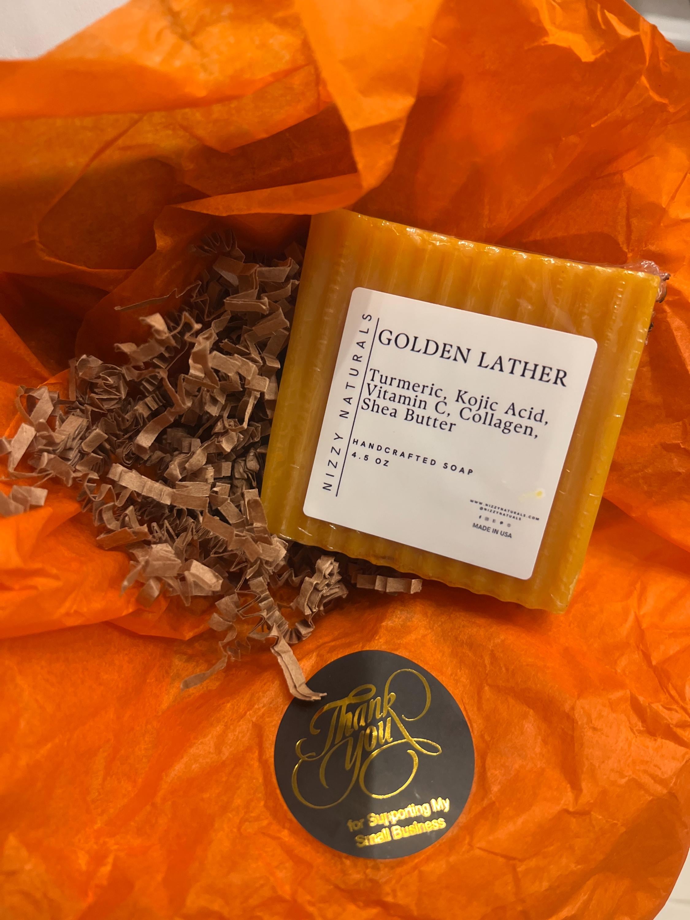 Our Golden Glow Brightening Soap is handmade with a powerful blend of Turmeric, Kojic Acid, and Vitamin C to help uneven skin tone. We’ve added Collagen to support skin elasticity and Shea Butter to deeply hydrate and soften your skin after every use.